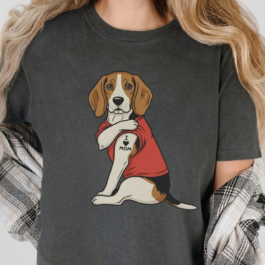 Beagle Dog I Love Mom Graphic Tee for Pet Lovers