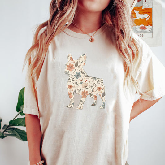 Floral French Bulldog Shirt, Frenchie Dog Mom Wildflower Crewneck