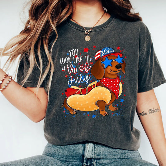 4th of July Hot Dog Shirt, Funny Wiener Dog Tee Gift
