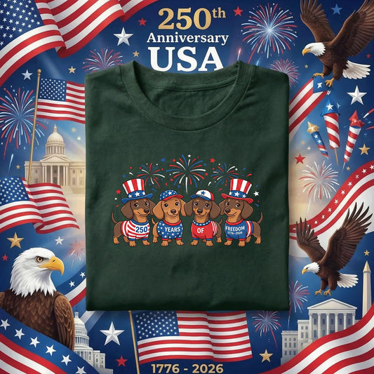 America 250th Birthday Shirt, Patriotic Dachshund Tee